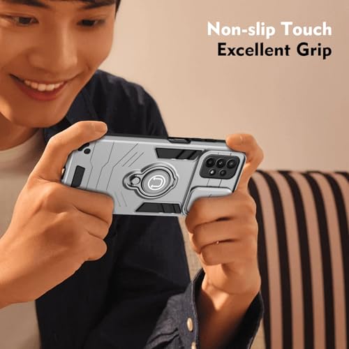 FASCINATION - جراب حماية موبايل متوافق مع سامسونج جالاكسي A23 شبكة الجيل الرابع 4G من فاسينيشن، مع واقي كاميرا منزلق، مزيج ناعم وصلب مع حلقة معدنية مدمجة دوارة 360 درجة، لون رمادي