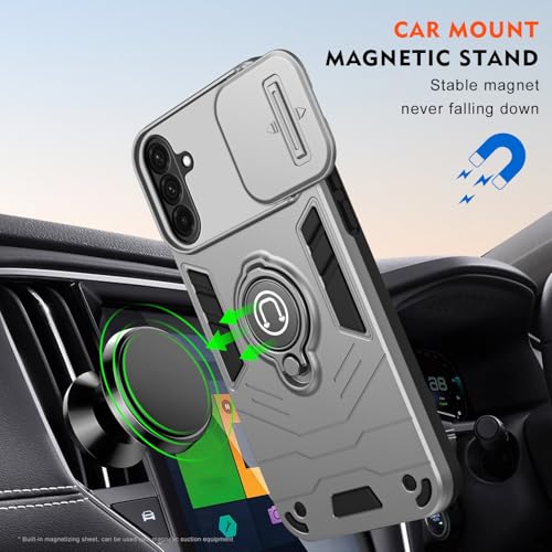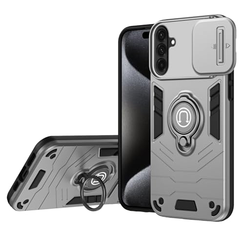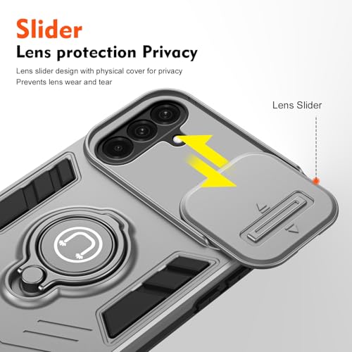 FASCINATION - فاسينيشن جراب موبايل متوافق مع سامسونج جالاكسي A56 مع درع كاميرا منزلق، مزيج ناعم وصلب مع حلقة معدنية مدمجة دوارة 360 درجة لموبايل سامسونج جالاكسي A56 (رمادي)