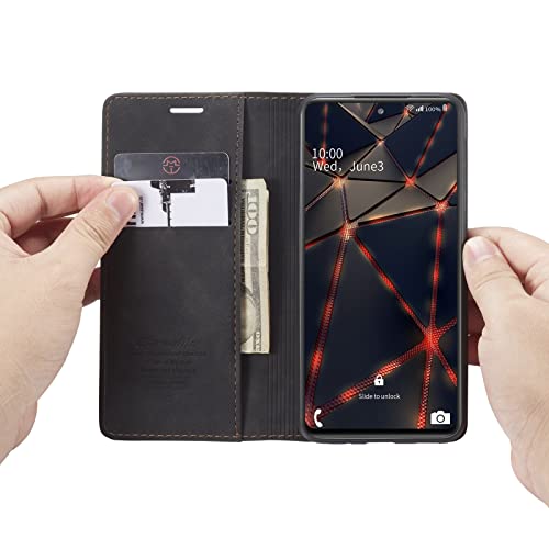 FASCINATION - جراب موبايل متوافق مع سامسونج جالاكسي M52 شبكة الجيل الخامس 5G جلد افقي متعدد الوظائف فتحة للبطاقات وحامل ومحفظة لهاتف M52 5G اسود منقلب
