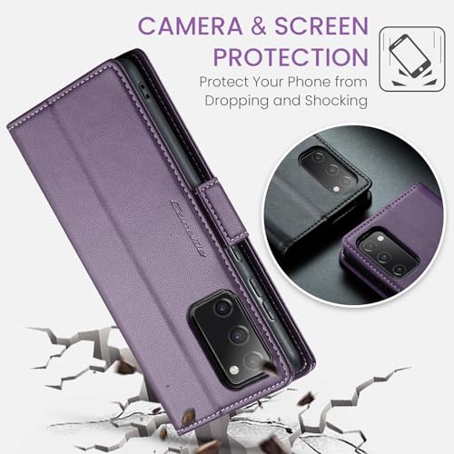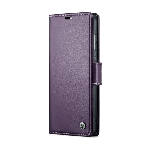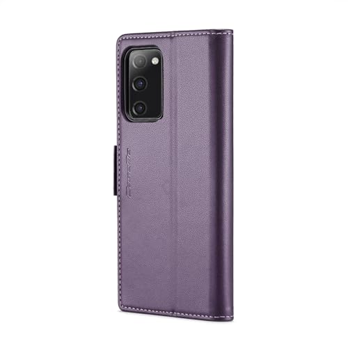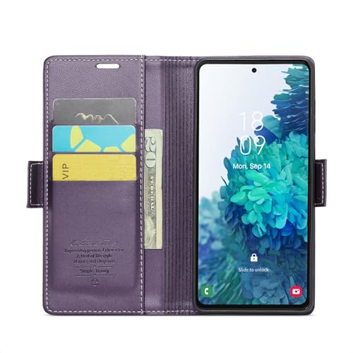 FASCINATION - جراب موبايل متوافق مع سامسونج جالاكسي M52 شبكة الجيل الخامس 5G متعدد الوظائف قابل للطي افقي من جلد البولي يوريثين فتحة للبطاقات وحامل ومحفظة لهاتف M52 5G ارجواني منقلب