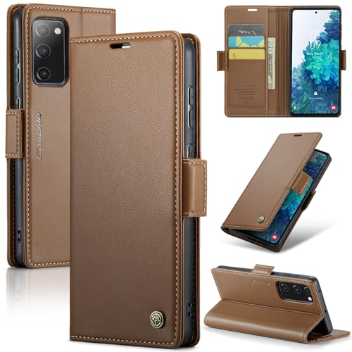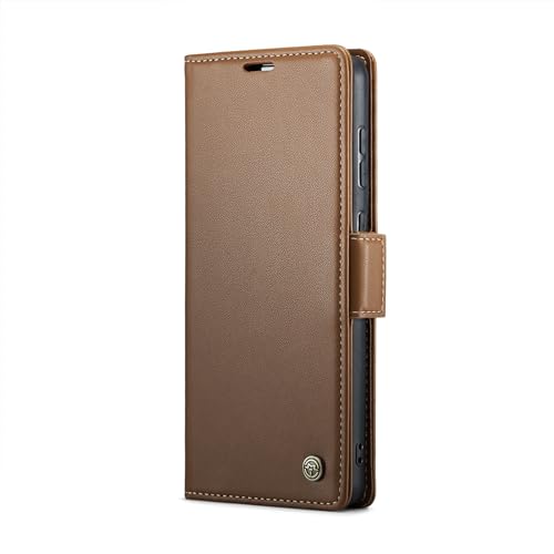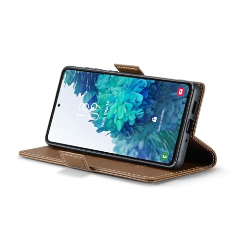 FASCINATION - جراب موبايل متوافق مع سامسونج جالاكسي M52 شبكة الجيل الخامس 5G متعدد الوظائف قابل للطي افقي من جلد البولي يوريثين فتحة للبطاقات وحامل ومحفظة فاسينيشن بني منقلب