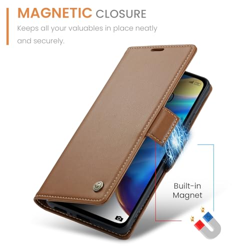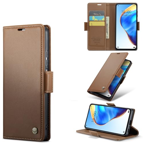 FASCINATION - جراب موبيل من فاسينيشن متوافق مع فيفو V27 5G متعدد الوظائف قابل للطي أفقيًا جلد البولي يوريثان الفاخر فتحة بطاقة وحامل وجراب بنمط محفظة لموبيل بني
