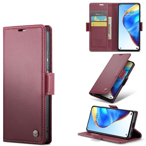 FASCINATION - جراب متعدد الوظائف من جلد صناعي مع فتحة للكروت وحامل ومحفظة فاسينشن لموبايل فيفو V30 شبكة الجيل الخامس 5G أحمر منقلب