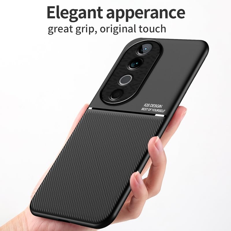 FASCINATION - جراب موبايل من فاسينيشن جلدي كلاسيكي مضاد للصدمات ومصنوع من جلد البولي يوريثين الناعم والمقاوم للحرارة والبولي كربونات لموبايل فيفو V40 شبكة الجيل الخامس 5G (لون أسود)