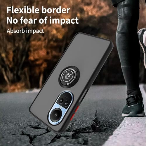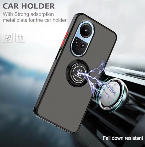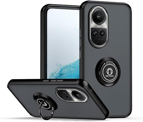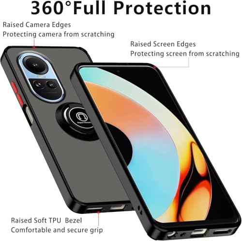 FASCINATION - جراب حماية من البولي كربونات والبولي يوريثين المقاوم للحرارة ومضاد للصدمات مع حلقة دوارة بزاوية 360° متوافق مع موبايل أوبو رينو 10/10 برو الذي يدعم شبكة الجيل الخامس 5G من فاسينيش (أسود)