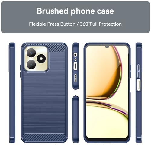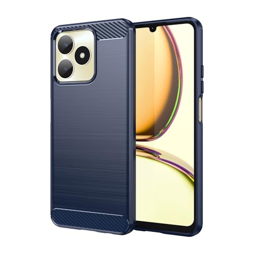 FASCINATION - جراب موبايل متوافق مع ريلمي C53 الجيل الرابع 4G سيليكون كربوني اصلي مرن ورفيع ومتين ومضاد للصدمات لموبايل C53 4G ازرق