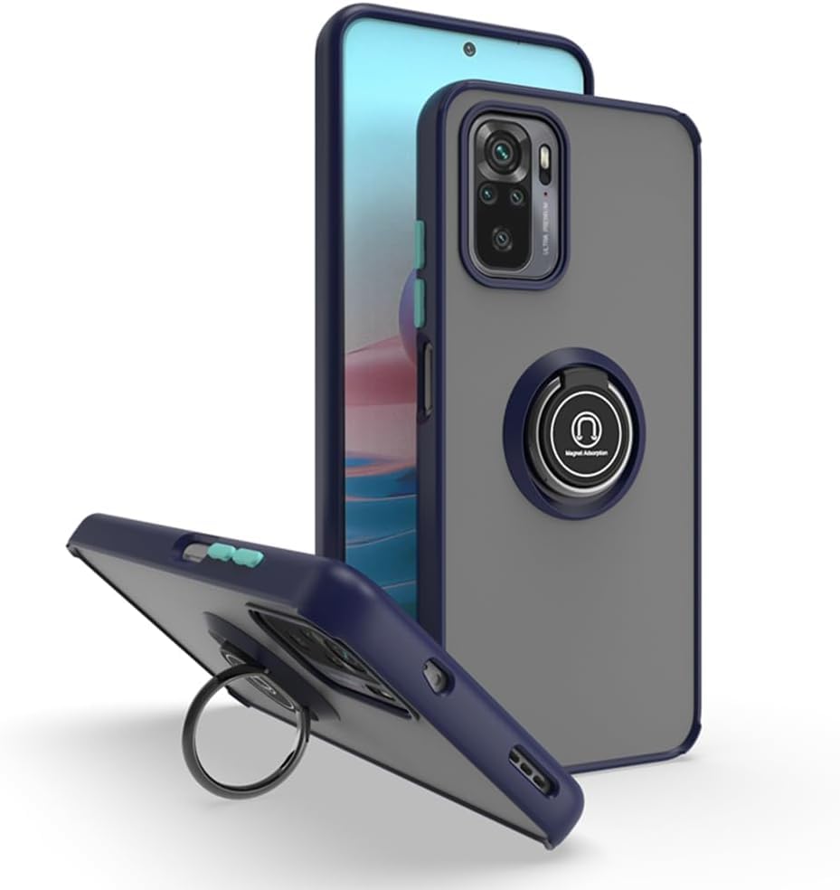 FASCINATION - جراب موبايل من البولي كربونات المطفي والبولي يوريثين المقاوم للحرارة مزود بحلقة دوارة 360° وتصميم مقاوم للصدمات لموبايل ريدمي نوت 10 شبكة الجيل الرابع 4G ونوت 10S من فاسينيشن (أزرق)