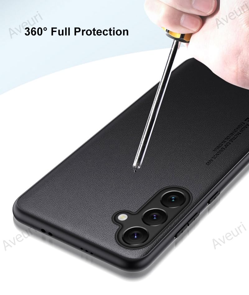 FASCINATION - فاسينيشن جراب موبايل متوافق مع سامسونج جالاكسي A15 فاخر من جلد البولي يوريثين بنمط اعمال خلفي السيليكون الناعم غير اللامع ممتص للصدمات لهاتف A15 اسود