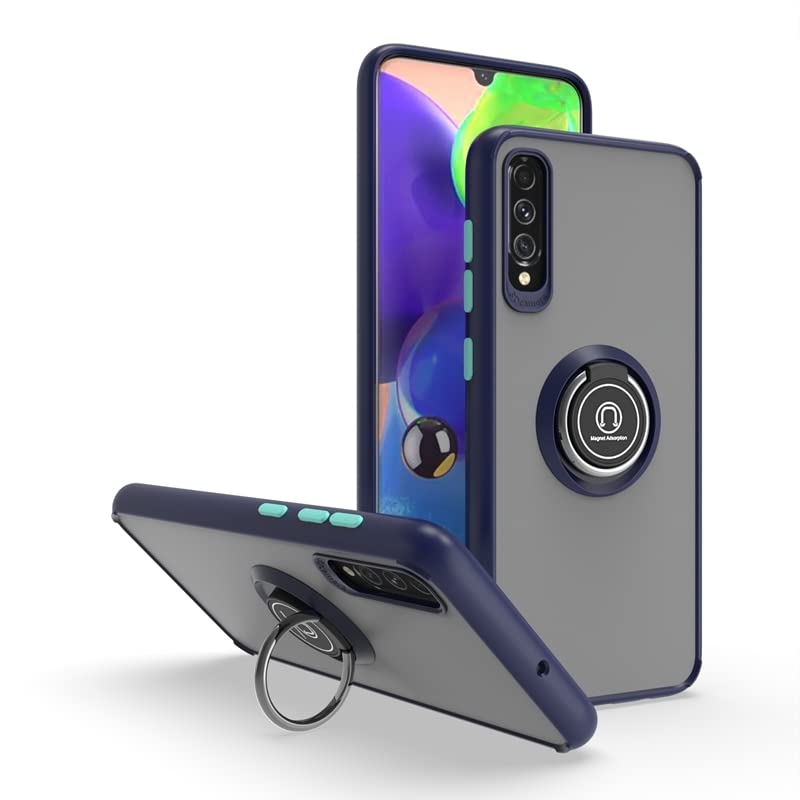 FASCINATION - جراب موبايل متوافق مع سامسونج جالاكسي A70 غير لامع من البولي كربونات + البولي يوريثين الحراري من فاسينيشن، جراب حماية مع حلقة 360 درجة، جراب حماية مضاد للصدمات لموبايل سامسونج جالاكسي A70، أزرق