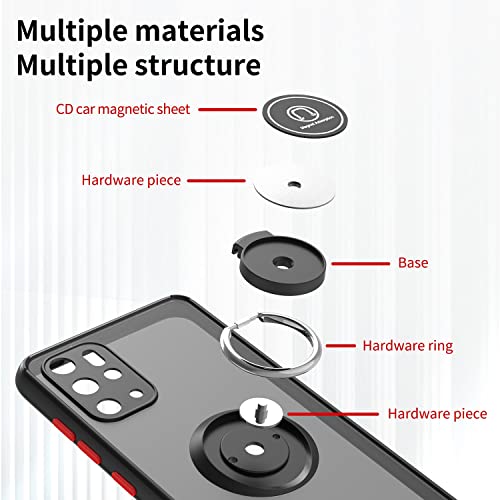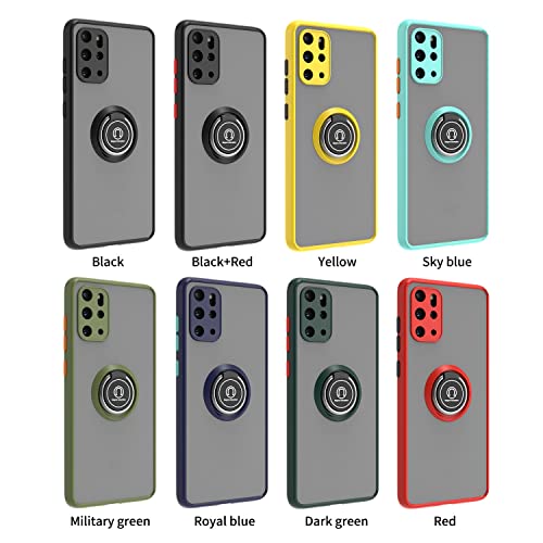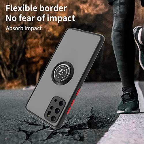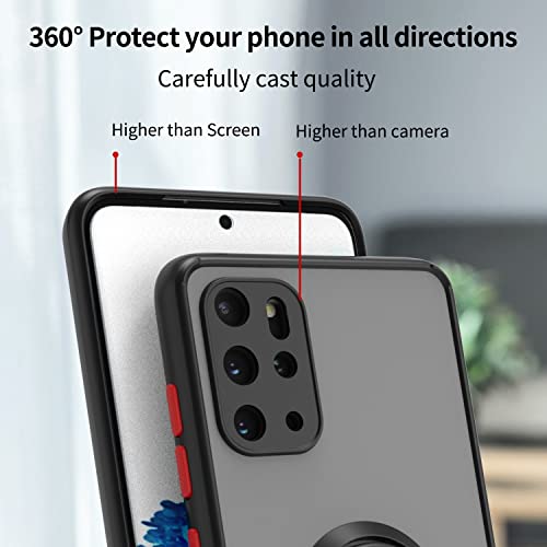 FASCINATION - جراب غير لامع من مادة البولي كربونات لموبايل سامسونج جالاكسي S20 بلس وجراب حماية فاخر من البولي يوريثين الحراري مع حلقة 360 درجة مقاوم للصدمات لموبايل سامسونج جالاكسي S20 بلس من فاسينيشن (أسود + أحمر)