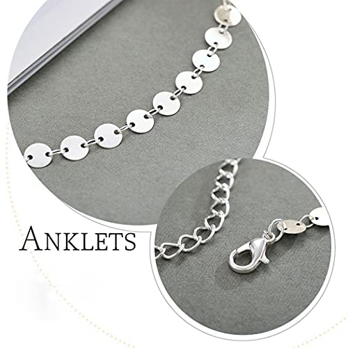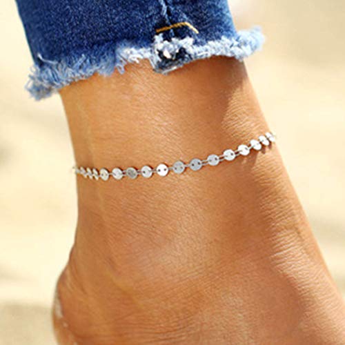 Fashband - خلخال بوهو ترتر من فاشباند، طبقات الذهب الفضة، الصيف للشاطئ والارجل الحافية، سلسلة مجوهرات للنساء والفتيات (فضي)