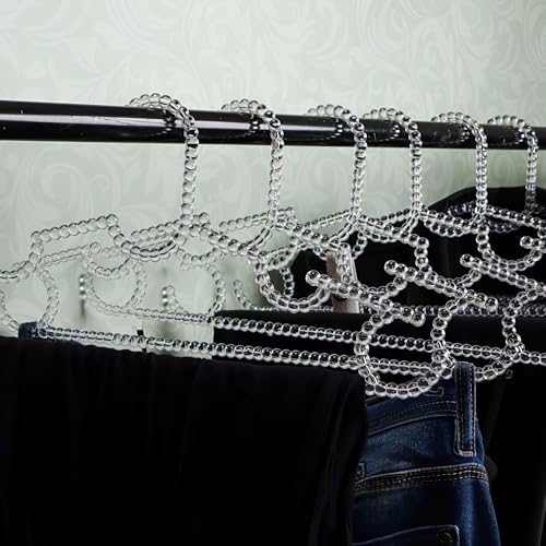 - شماعات معدنية أنيقة مزينة بخرز يشبه اللؤلؤ، مصممة لتعزيز جماليات خزانة الملابس بأسلوب أنيق ومتانة.