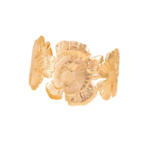 Generic - اكسسوار عصري - سوار عريض بتصميم زهرة ذهبية مذهلة، مزيج جميل من إلهام الفراشة العتيقة للنساء الأنيقات اللواتي يعشقن قطع المجوهرات الفريدة