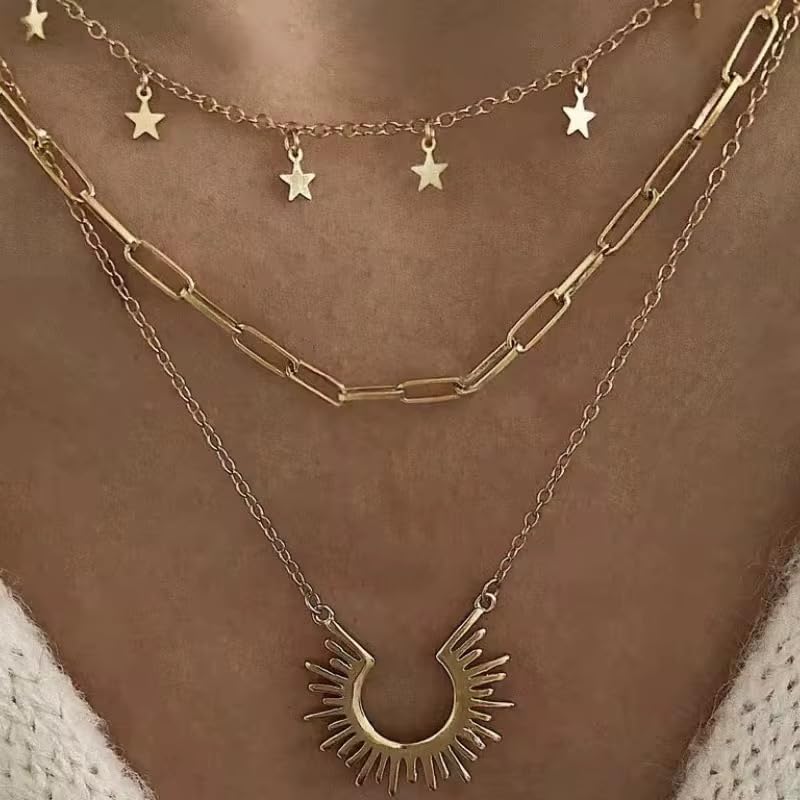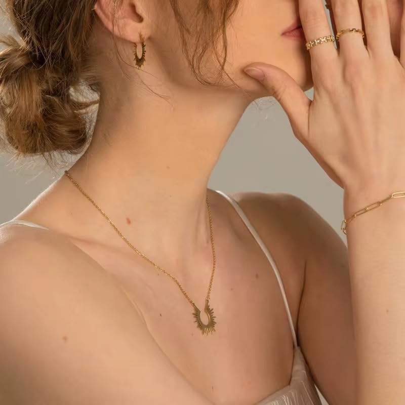 Generic - قلادة عصرية من الصلب على شكل نجمة مفتوحة مطلية بالذهب ومقاومة للماء ولا تفقد بريقها للنساء
