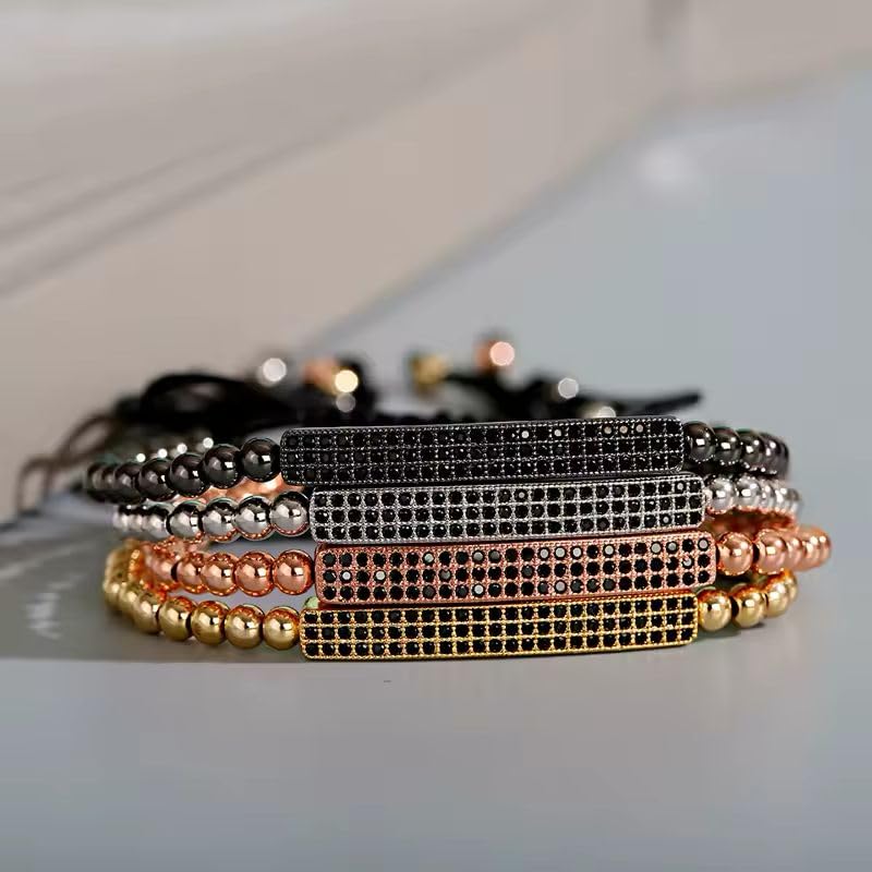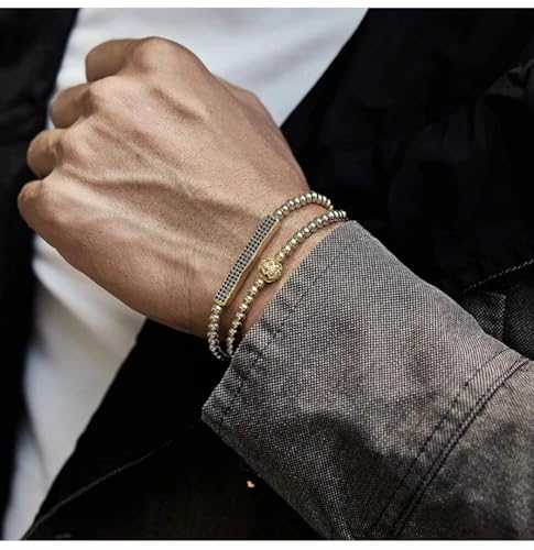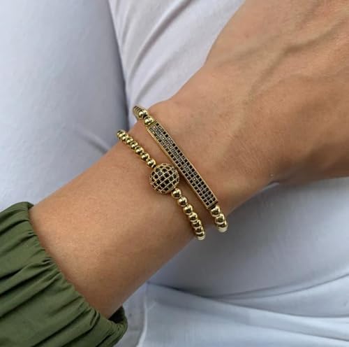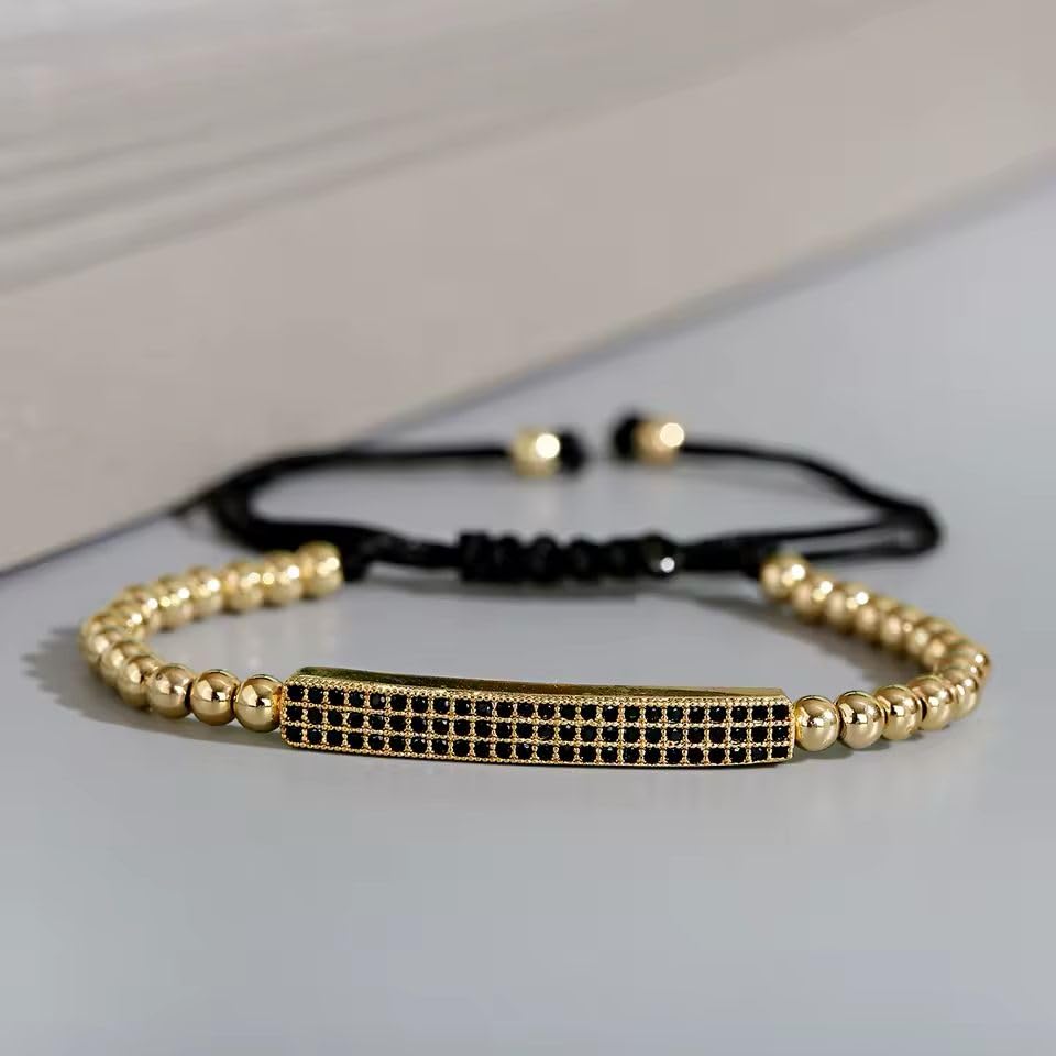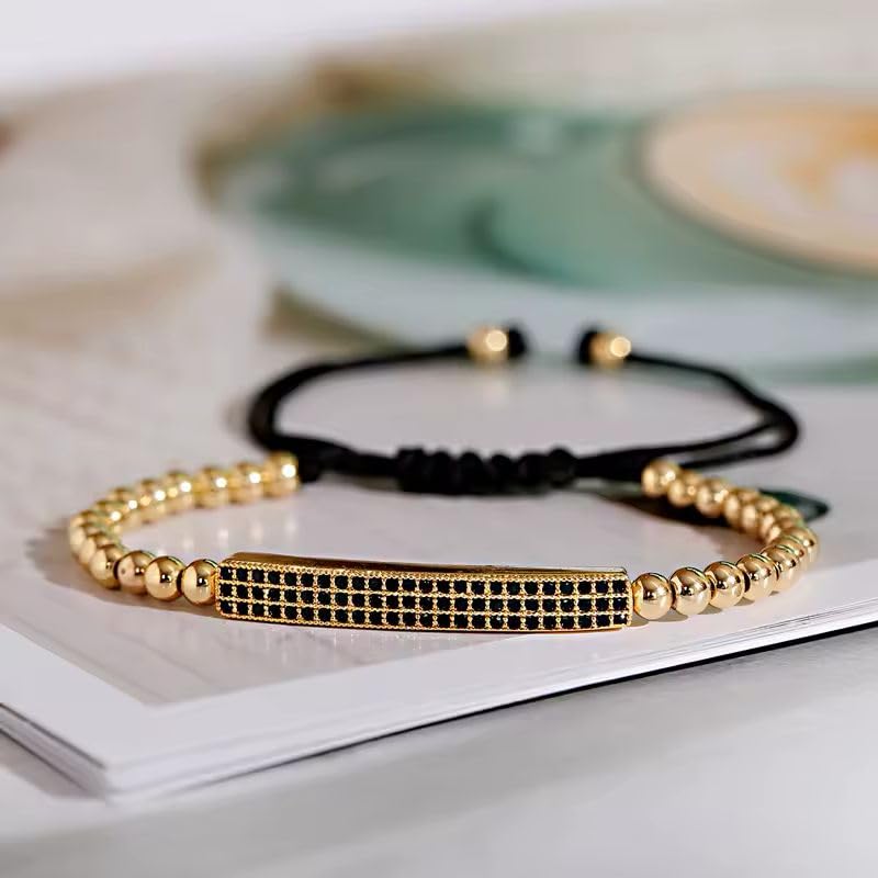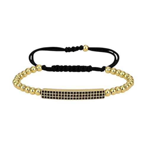 Generic - سوار أنيق مع خرز ذهبي وشريط أسود قابل للتعديل، مزين بكريستال أسود