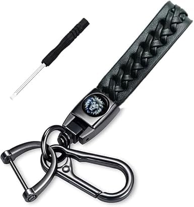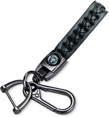 Generic - مدالية جلد مضفرة بشكل أنيق - سلسلة مفاتيح للسيارة والمتوسيكل والمنزل والمكتب علي شكل أسد لون أسود - من - SA car