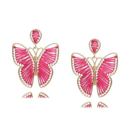 Generic - اقراط عصرية ملونة على شكل فراشة راتان للنساء، مجوهرات بوهيمية مصنوعة يدويا، اقراط شاطئ صيفية، مثالية للملابس الكاجوال والمهرجانات
