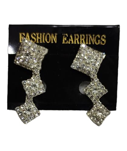 Generic - اقراط متدلية انيقة من الكريستال بتصميم مربع من حجر الراين، لون فضي، مجوهرات انيقة للارتداء في المساء