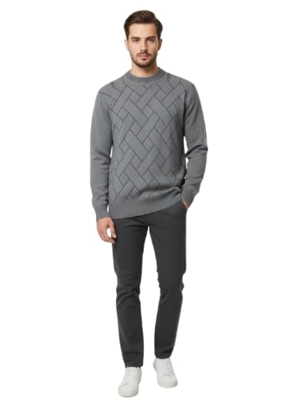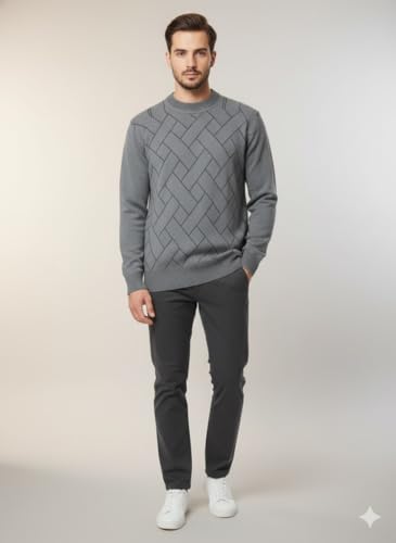 Generic - بلوفر صوف رجالي برقبة مستديرة بنقشة الألماس العصرية – كنزة شتوية دافئة بقصة مريحة وأنيقة – يناسب مقاسات [45 كجم إلى 75 كجم]