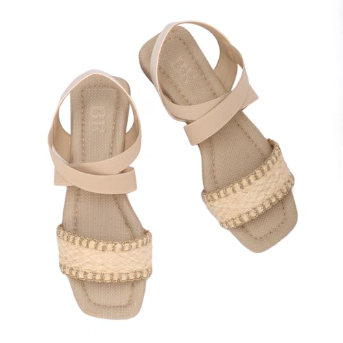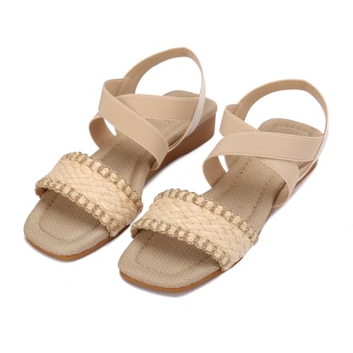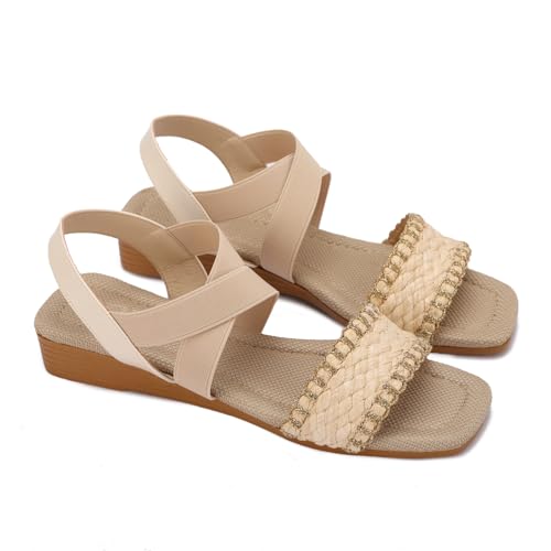 Generic - صندل حريمي أنيق بأشرطة مطاطية وتصميم مزين بالخيوط