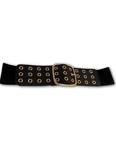 Generic - حزام عصري مرن من الجلد الصناعي - حزام وسط مع اكسسوارات جذابة وأنيقة مع مشبك معدني كبير من الذهب للنساء