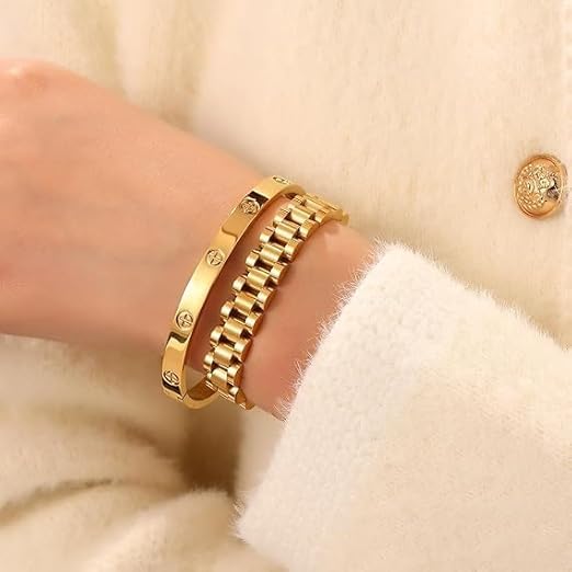 Generic - سوار ذهبي أنيق للنساء، تصميم عصري مزدوج من الستانلس ستيل