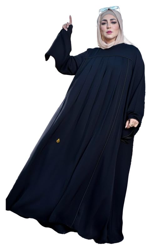 ELASLY Store - عباية خليجي بتصميم عصري مع خطوط طولية وأزرار تزيينية ، ياقة نصف مرتفعة وأكمام واسعة , موديل 2043