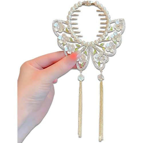 Generic - مشابك شعر بتصميم مخالب عصرية - مشبك شعر عصري بتصميمات زهور ولآلئ جميلة، مثالي لتصفيفات الشعر السريعة (قطعة 1)