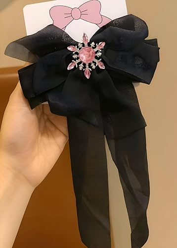 Generic - مشبك شعر عصري - فيونكة شريطية جميلة مع كريستالات مدمجة، اورجانزا شفافة، نمط ذيل طويل، خيارات متعددة الالوان لمظهر انيق (اسود)