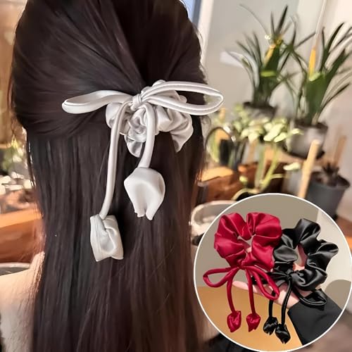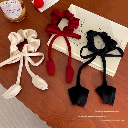 Generic - اداة شعر عصرية - ربطات شعر من الساتان، 3 مجموعات من اكسسوارات الشعر الناعمة والأنيقة للنساء والفتيات بتصميم كوري عصري (احمر)
