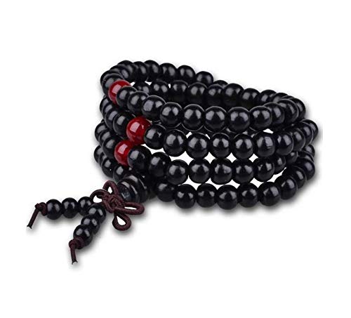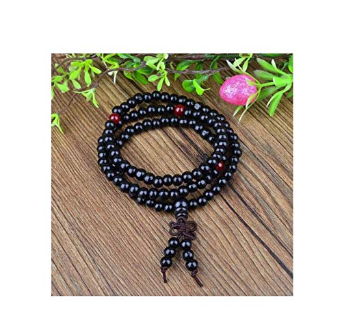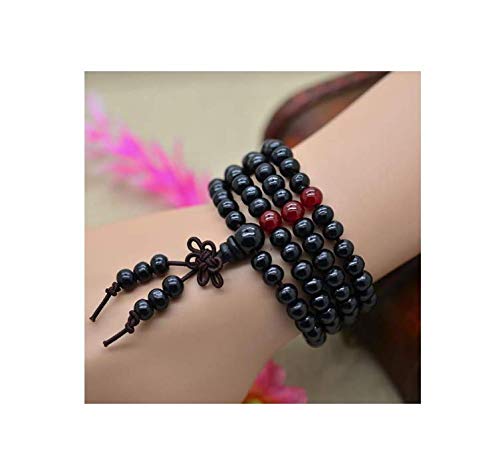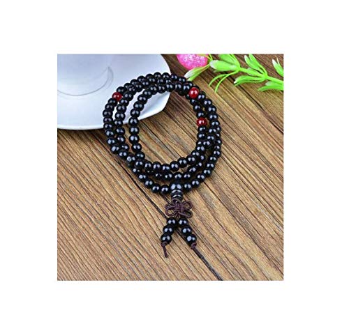 generic - سوار عصري مصنوع يدويا من خشب الصندل الاسود 108 خرزة خشبية وعقدة صينية