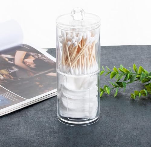 Generic - حامل اعواد قطنية اكريليك شفاف 2 في 1 مع غطاء منظم، حاوية تخزين مستحضرات التجميل من فاشون هوم