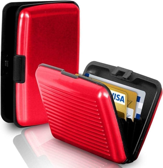 Generic - محفظة من فاشون هوم مصنوعة من الألومنيوم للجنسين، بتصميم عصري باللون الأحمر، خفيفة الوزن ومقاومة للماء