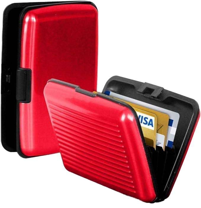Generic - محفظة من فاشن.هوم مصنوعة من الألومنيوم للجنسين، بتصميم عصري باللون الأحمر، مضادة للماء وتتسع لـ 8 بطاقات