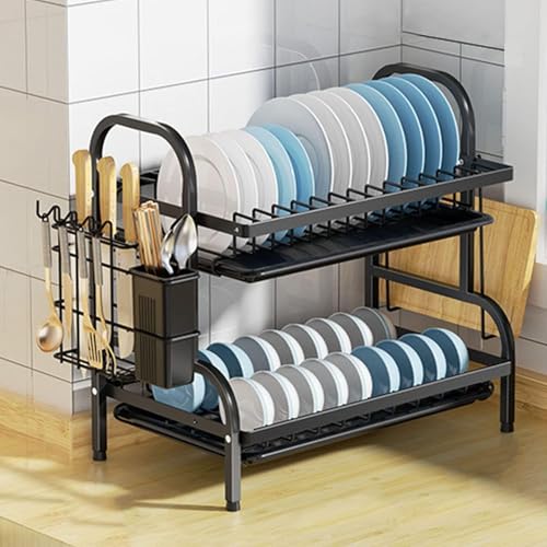 generic - رف تجفيف الاطباق متعدد الوظائف من فاشون هوم (طابقين) رف اطباق من الستانلس ستيل مع وعاء تصريف - اضافة انيقة وعملية لمطبخك