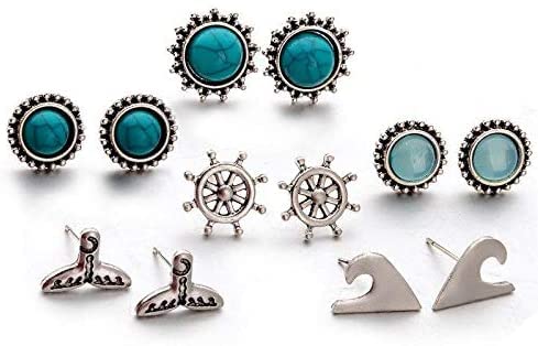fashion jewelery - مجموعة من 6 ازواج اقراط بنمط غجري بوهيمي - مطلية بالفضة متعدد الألوان فاشون جيليري