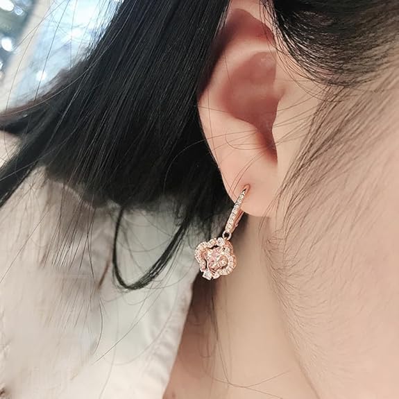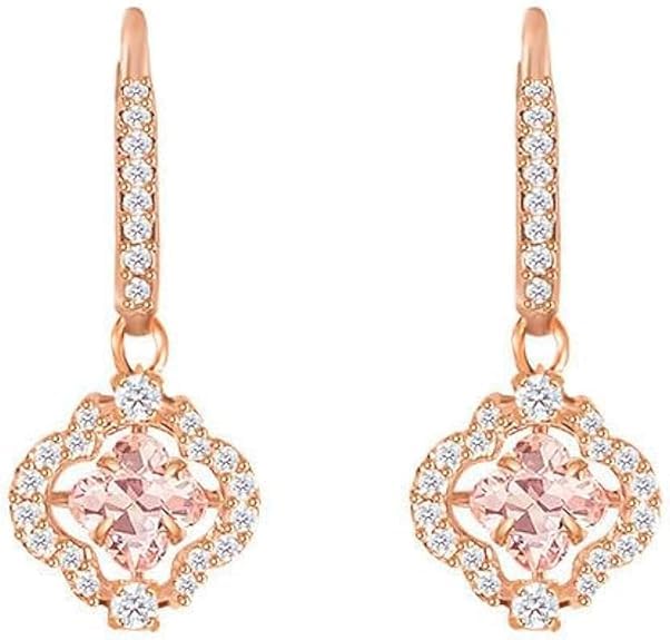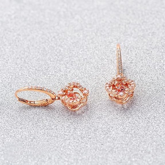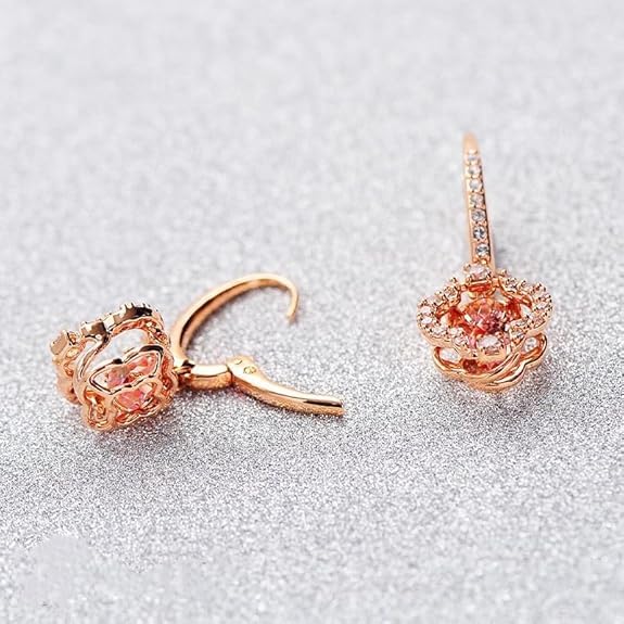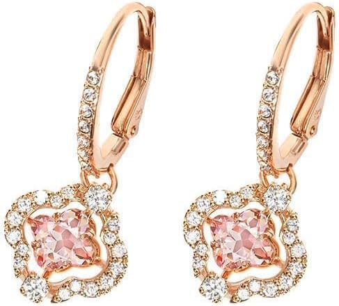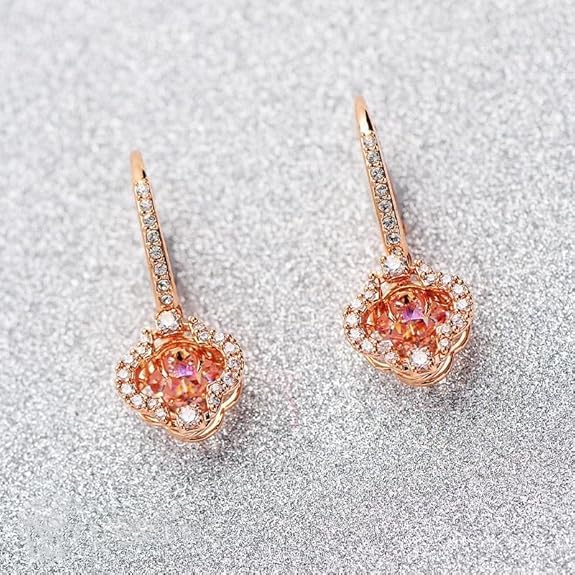 fashion mania - حلقان اكسسوارات مجوهرات أزياء دلاية برسمة ورقة حظ مطلي روز جولد كريستال، مظهر أنيق وعصري للنساء