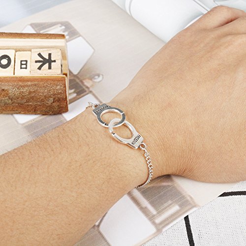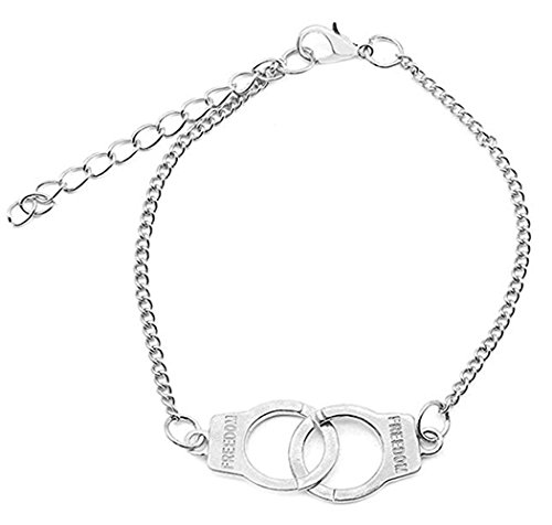 generic - سوار سلسلة اصفاد بسيط منقوش بعبارة «Freedom» بعبارة «Partners in Crime Best Friends» من فاشن جوليري، خليط معدني