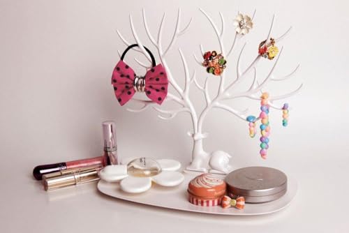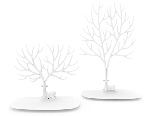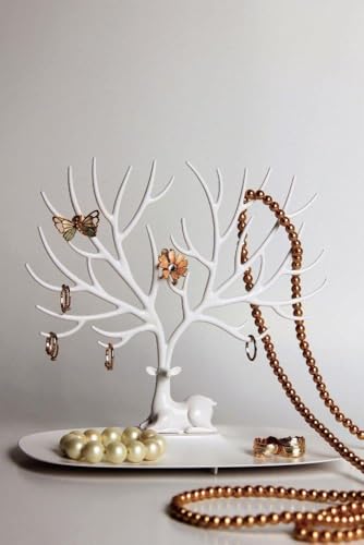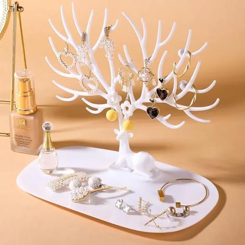Generic - تخزين مجوهرات عصرية - رفوف على شكل شجرة الغزلان حوامل مع قرون ايلك للحلقان والسلاسل والساور وأحمر الشفاه والساعات والمفاتيح بلاستيك أبيض