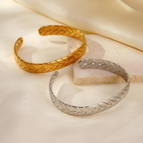 Generic - مجوهرات عصرية - سوار مذهل من الستانلس ستيل بتصميم اساور مفتوحة فريدة من نوعها، مثالي للنساء والفتيات اللواتي يبحثن عن رفع اسلوبهن للحفلات والنزهات الكاجوال