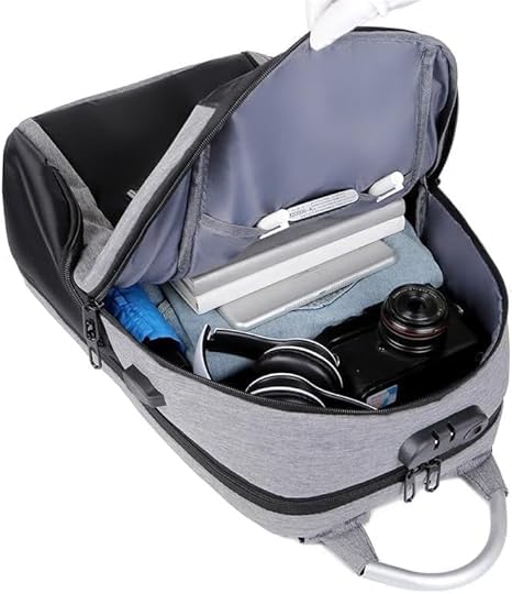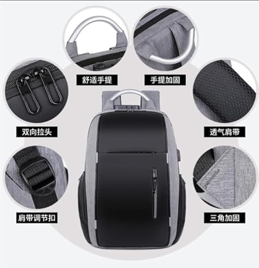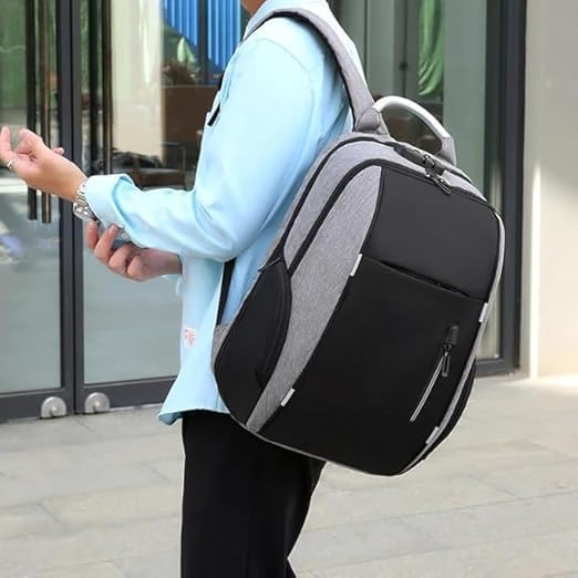 Generic - حقيبة ظهر عصرية للكمبيوتر المحمول، أسود، مقاومة للماء، حقيبة سفر مع حزام تهوية، سعة كبيرة، متعددة الجيوب، مع حماية مبطنة