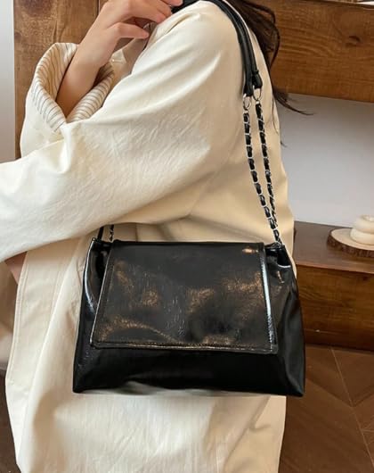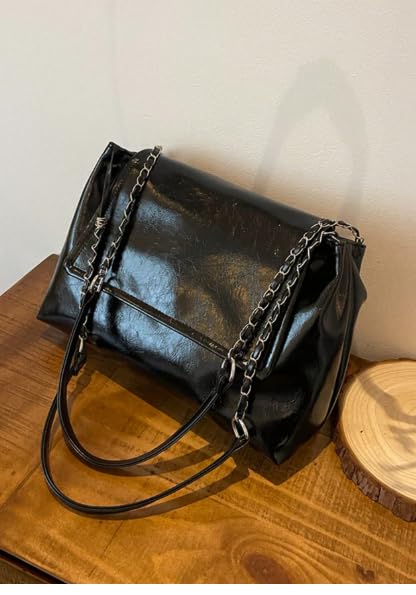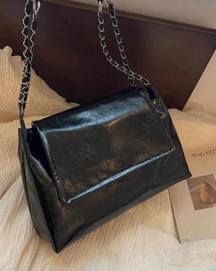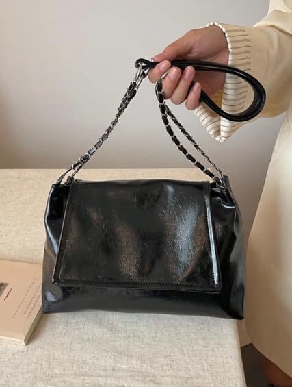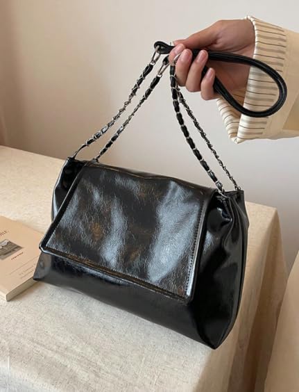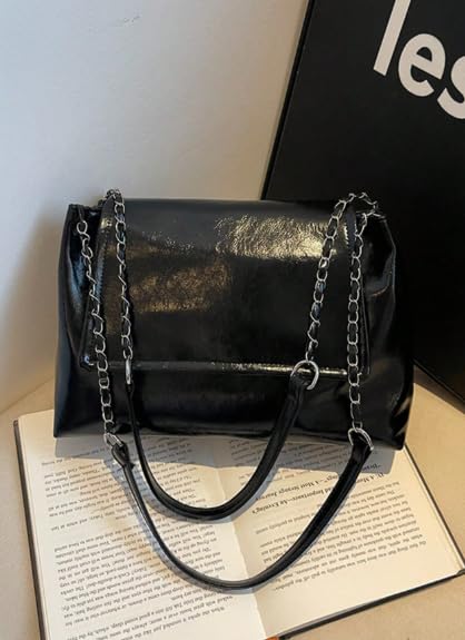 Generic - حقيبة كتف عصرية كبيرة السعة بفتحة علوية وغطاء قابل للطي - حقيبة يد نسائية متعددة الاستخدامات للعمل والتنقل اليومي بسير سلسلة معدنية وتصميم جديد لموضة الربيع