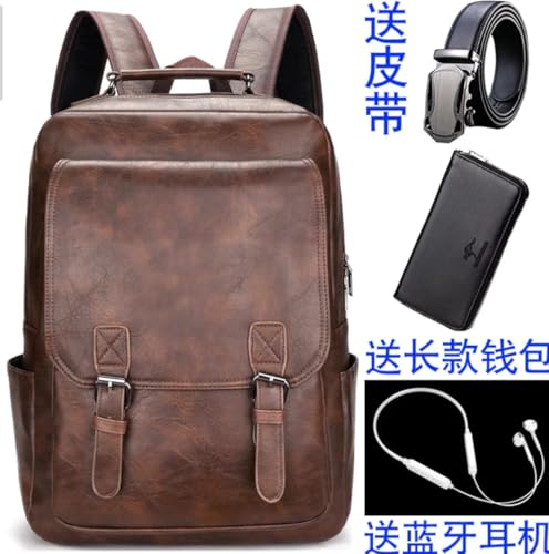 Generic - حقيبة ظهر جلدية عصرية للرجال-حقيبة ظهر لاب توب ومتعددة الوظائف والمهام بسعة كبيرة ومنظمة-اسود