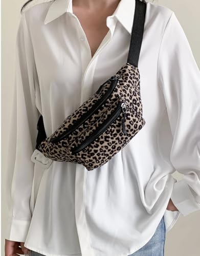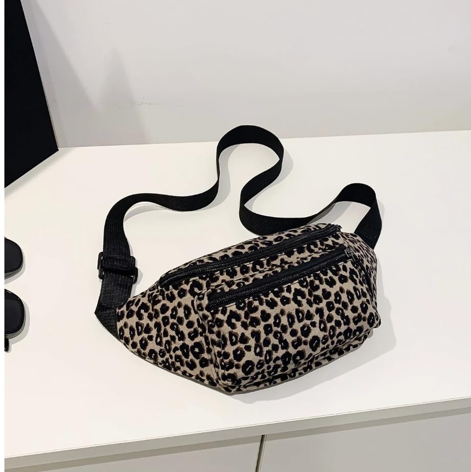 Generic - شنطة خصر عصرية بطبعة جلد الفهد، شنطة خصر قابلة للتعديل، شنطة صدر قماشية متعددة الاغراض، مقاس M، اغلاق بسحاب، نمط كاجوال للتسوق