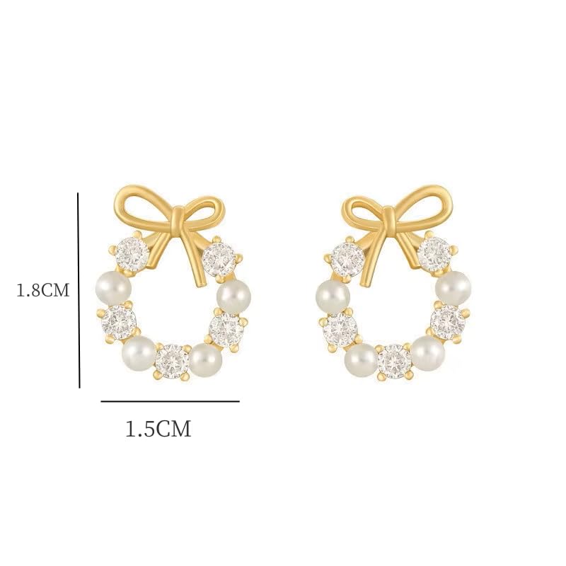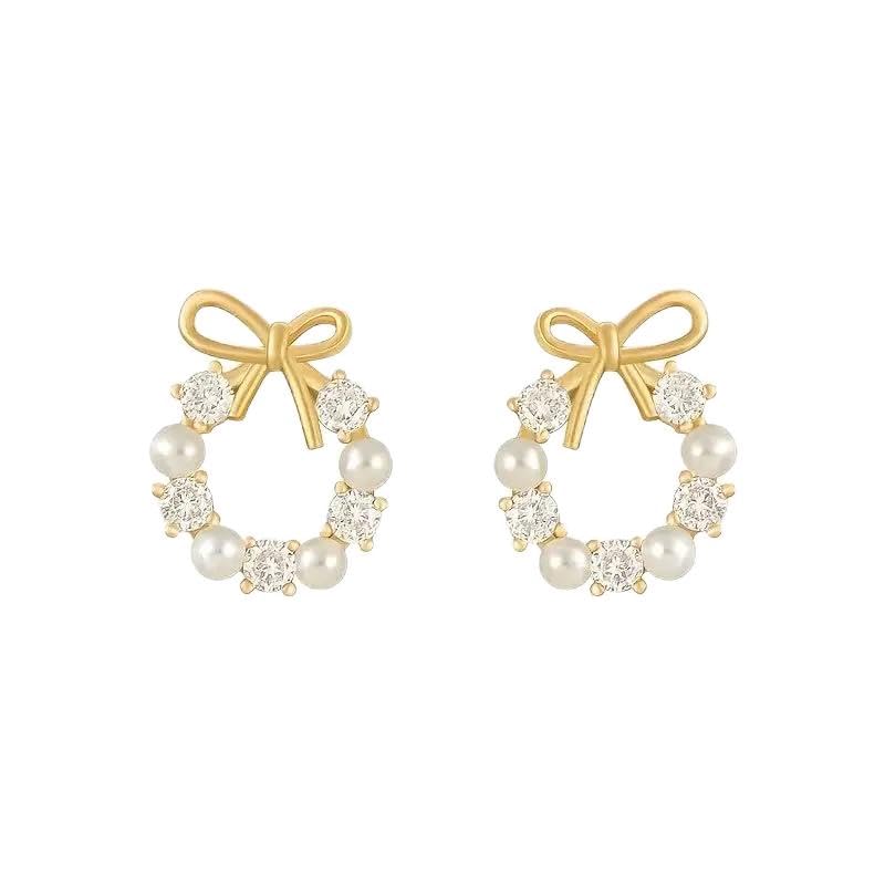 Generic - اقراط عصرية مرصعة باللؤلؤ والكريستال على شكل فيونكة للنساء والفتيات، اقراط عصرية لطيفة للحفلات للبيع بالجملة