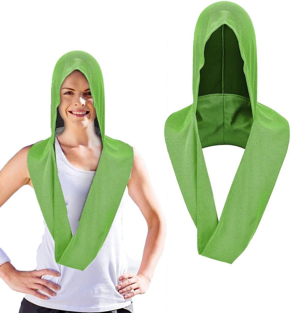 fashion mania - منشفة تبريد بغطاء للراس من فاشون مانيا ناعمة ومريحة وسريعة الجفاف للحماية الشمس وشاح لركوب الدراجات وصالة الالعاب الرياضية واليوغا والتخييم اخضر بلاستيك