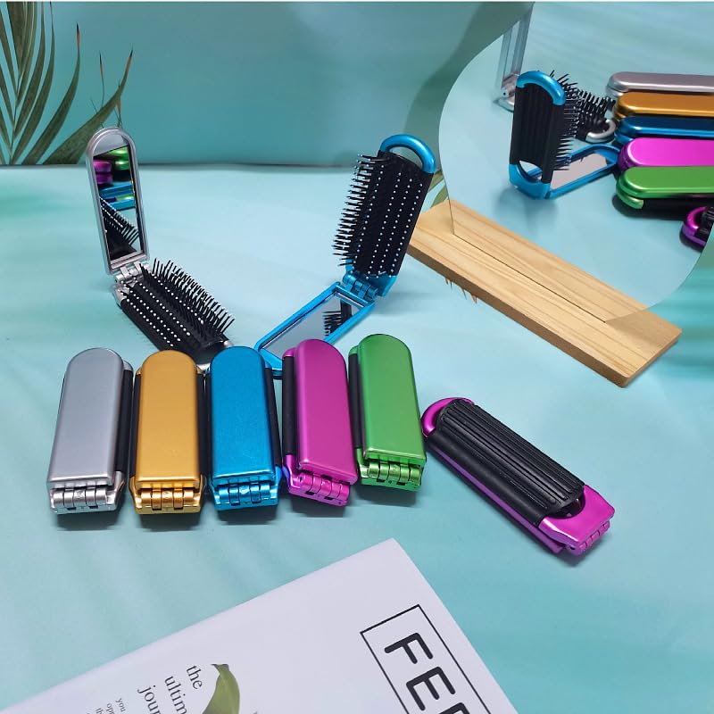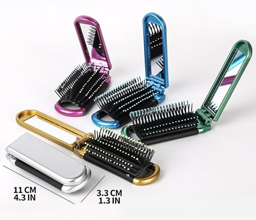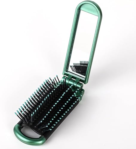 fashion mania - فرشاة شعر صغيرة قابلة للطي مع مراة، مجموعة فرش شعر صغيرة للنساء وصالة الالعاب الرياضية والرحلات والمحفظة والسباحة من فاشون مانيا، لون اخضر، قطعة واحدة