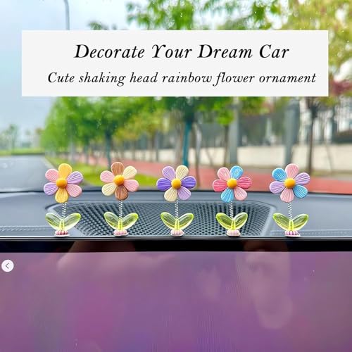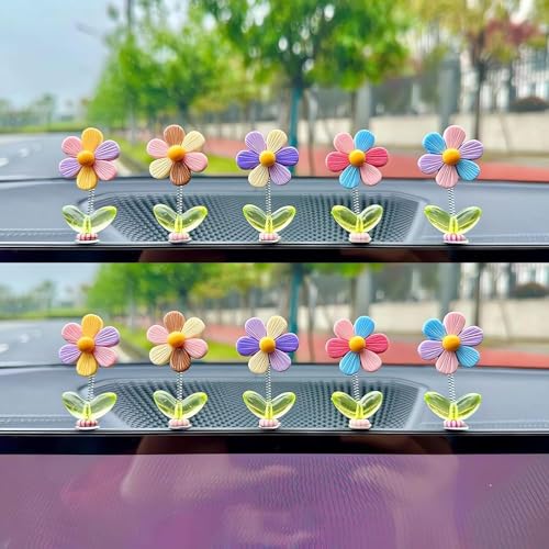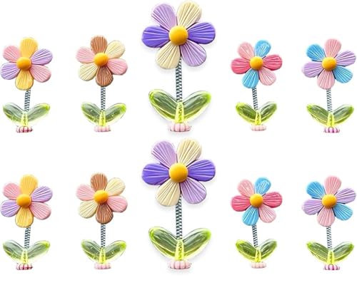 fashion mania - 10 قطع من اكسسوارات السيارة لاكي فلاور لتزيين لوحة العدادات من فاشن مانيا، زهور هزازة برأس هزاز لتزيين التابلوه للنساء، للفتيات اللطيفات، هدايا زينة داخلية للسيارة والمكتب، مادة صمغية