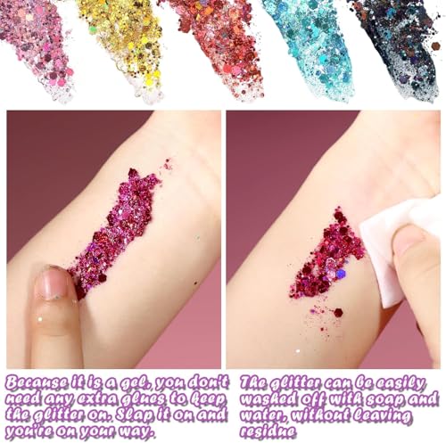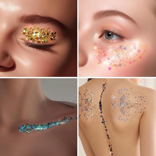 - 【جل لامع للمكياج للاحتفالات】أضف لمسة لطيفة إلى مظهرك باستخدام الجليتر لمناسبات محددة مثل الحفلات والمهرجانات والحفلات الموسيقية وأزياء الهالوين..