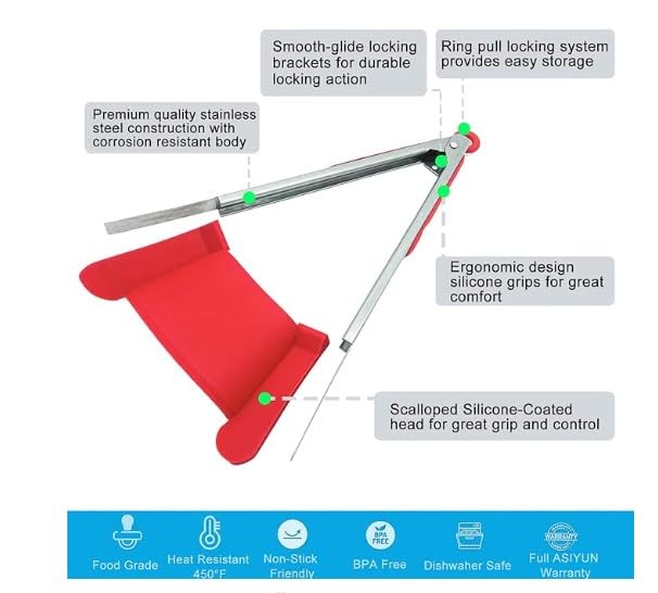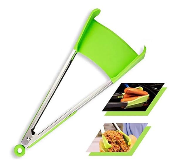 fashion mania - مساكة طعام مبتكر مسطحة 2 في 1 ملعقة سباتولا ومساكة طعام متعددة الوظائف غير لاصقة من السيليكون المقاوم للحرارة والآمن غذائيا بإطار من الفولاذ المقاوم للصدأ، مقاس 30.48 سم